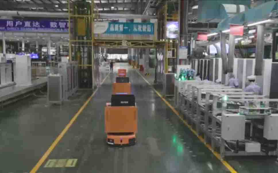 为车载冰箱物流配送打造的智能解决方案,,,包含产中物流通过潜伏举升AMR搬运至线边,,,产后成品物流智能仓储,,流程包含产中物流智能齐套入库,,,线边安灯叫料AMR智能配送至线边,,,成品入库、、出库,,通过无人堆高车机器人,,,智能仓储管理替代人工作业管理,,,实现更高存储、、、、更高效率、、更具柔性化的解决方案。。。